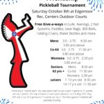 Info: + Date: Saturday, Oct. 22 + Time: 9:00 a.m. + Ages 16+ + Fee: $30 per person (includes racquet or paddle use) + Registration Deadline: Oct. 21 at 5pm + All events will be Round Robin Doubles + Food truck will be onsite
