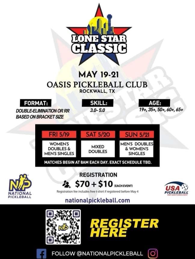 Skill/Age Brackets: 3.0-5.0; 19+, 35+, 50+, 60+ (70+ added at registration close if applicable)Registration Perks: All players receive a WPT player swag bag: a reusable, branded tote that contains elevated giveaway items, hydration and nutrition essentials, court fashion accessories, other player necessities, and a World Tour DRIFIT t-shirt! Players who register for 2 events will also receive entry into a 3rd event FOR FREE! Enter 3FORFREE at checkout.