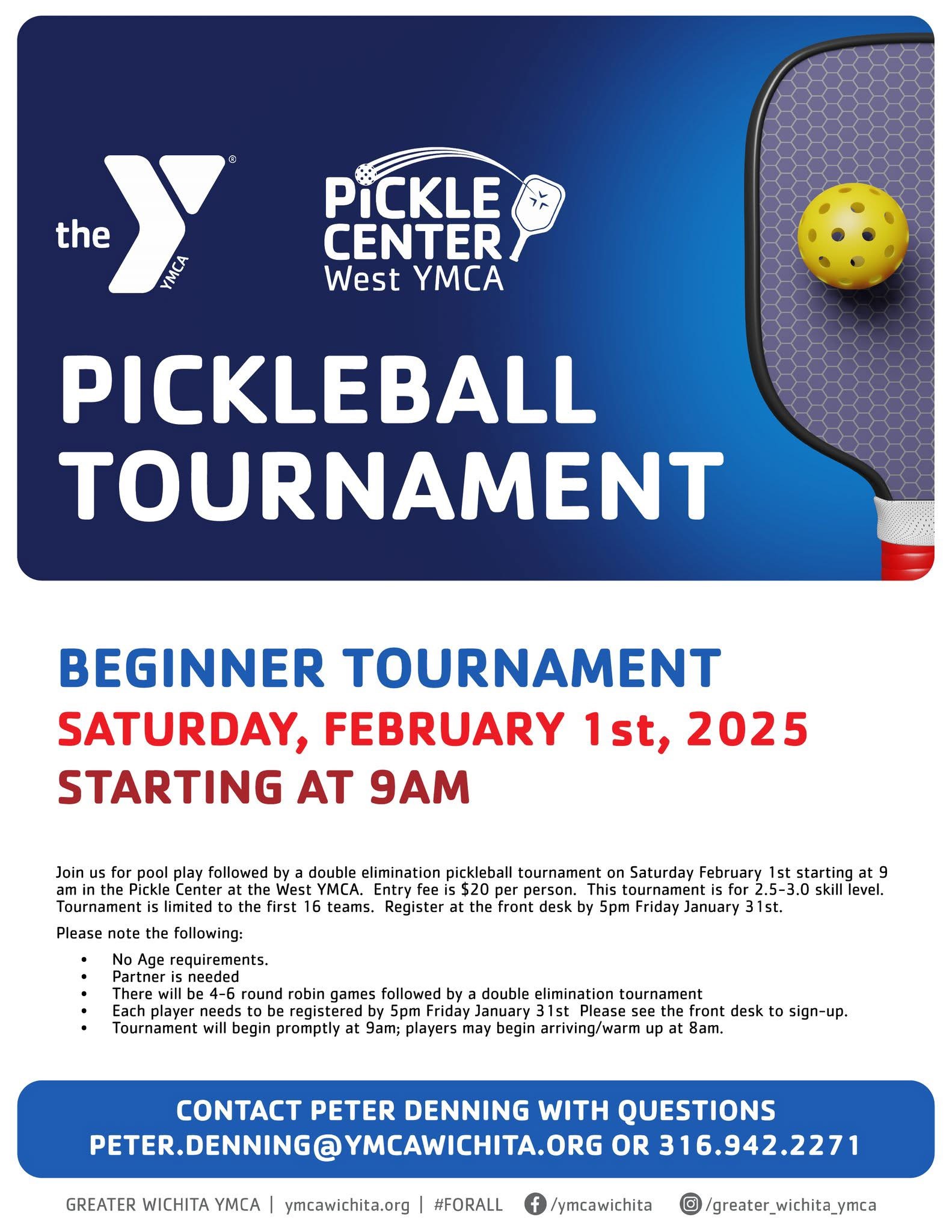 To register, email DavidIQPickleball@gmail.com or call 620-960-0901.